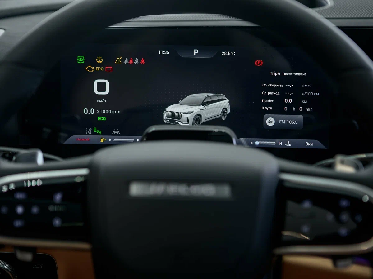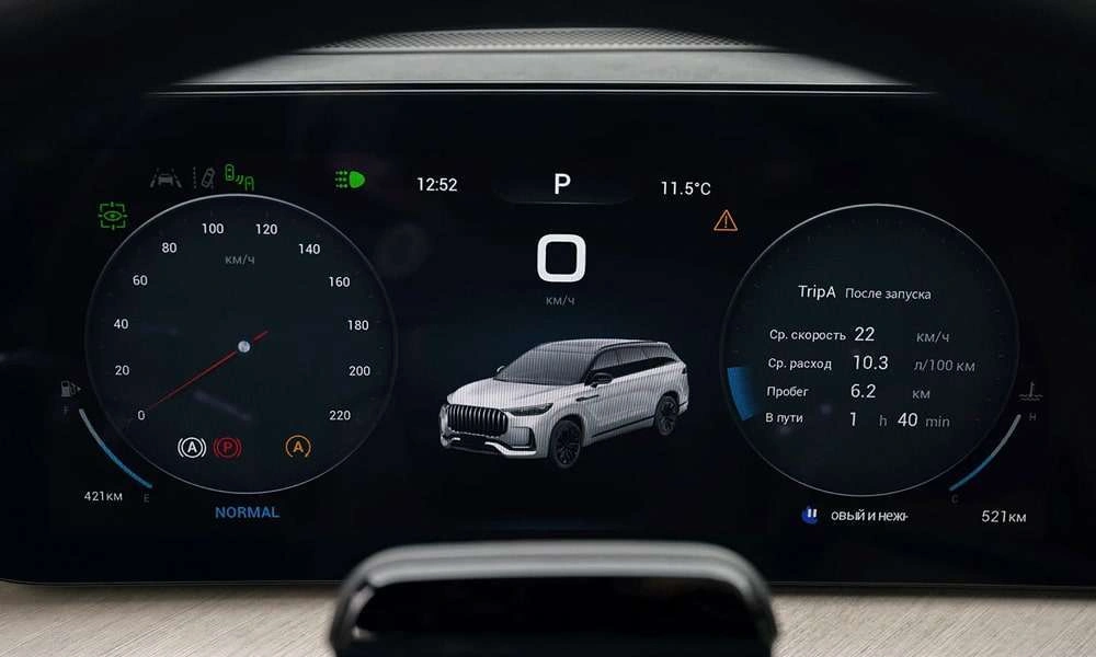 Цветной экран с бортовым компьютером в панели приборов 12"