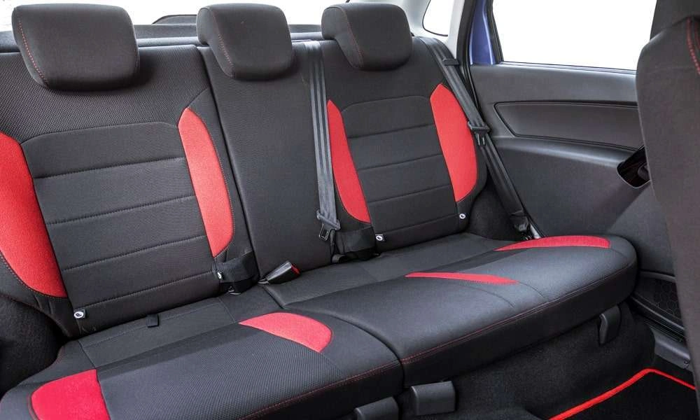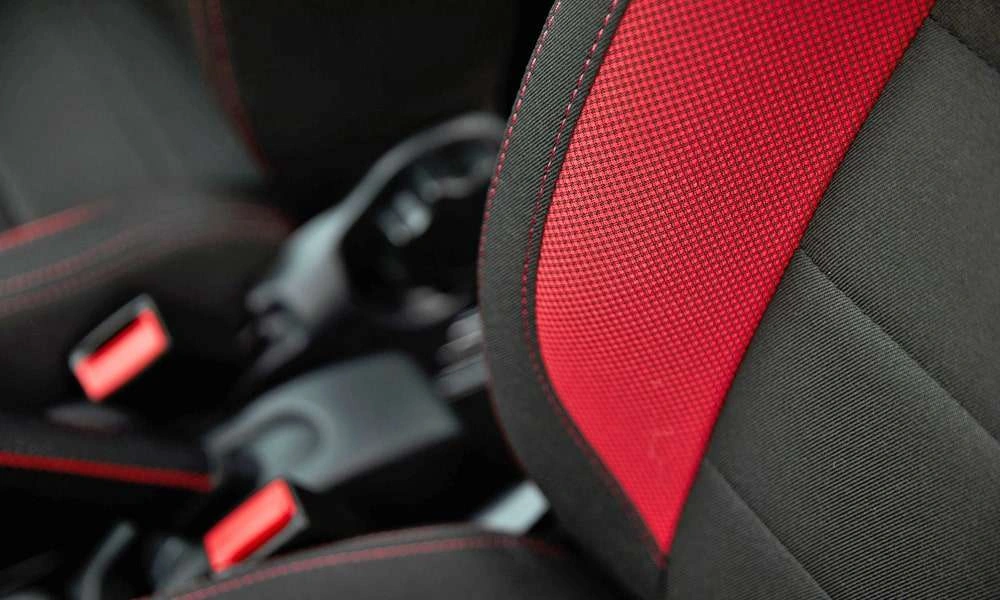| Обивка сидений ткань. Цвет черный с красными элементами |
